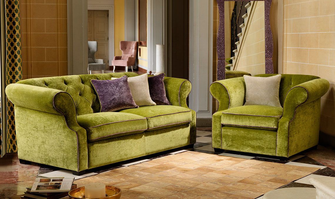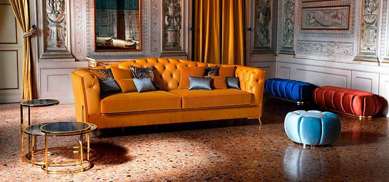 La collezione dello showroom include mobili, imbottiti e accessori, fra cui: vetrine, librerie, tavolini, sedute; divani, poltrone, sofà e pouf; tappeti e specchi.